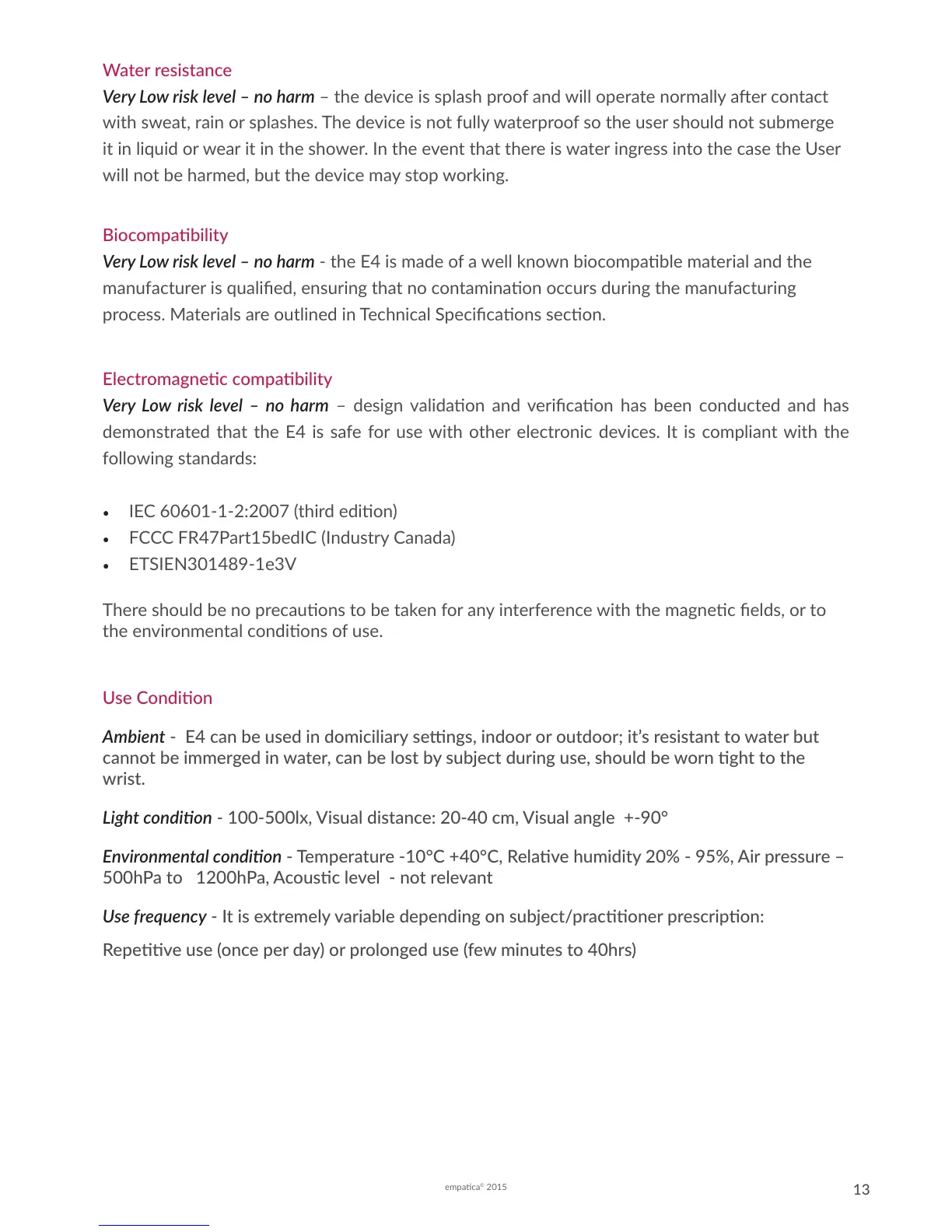 Ambient - E4 can be used in domiciliary sengs, indoor or outdoor; it’s resistant to water but