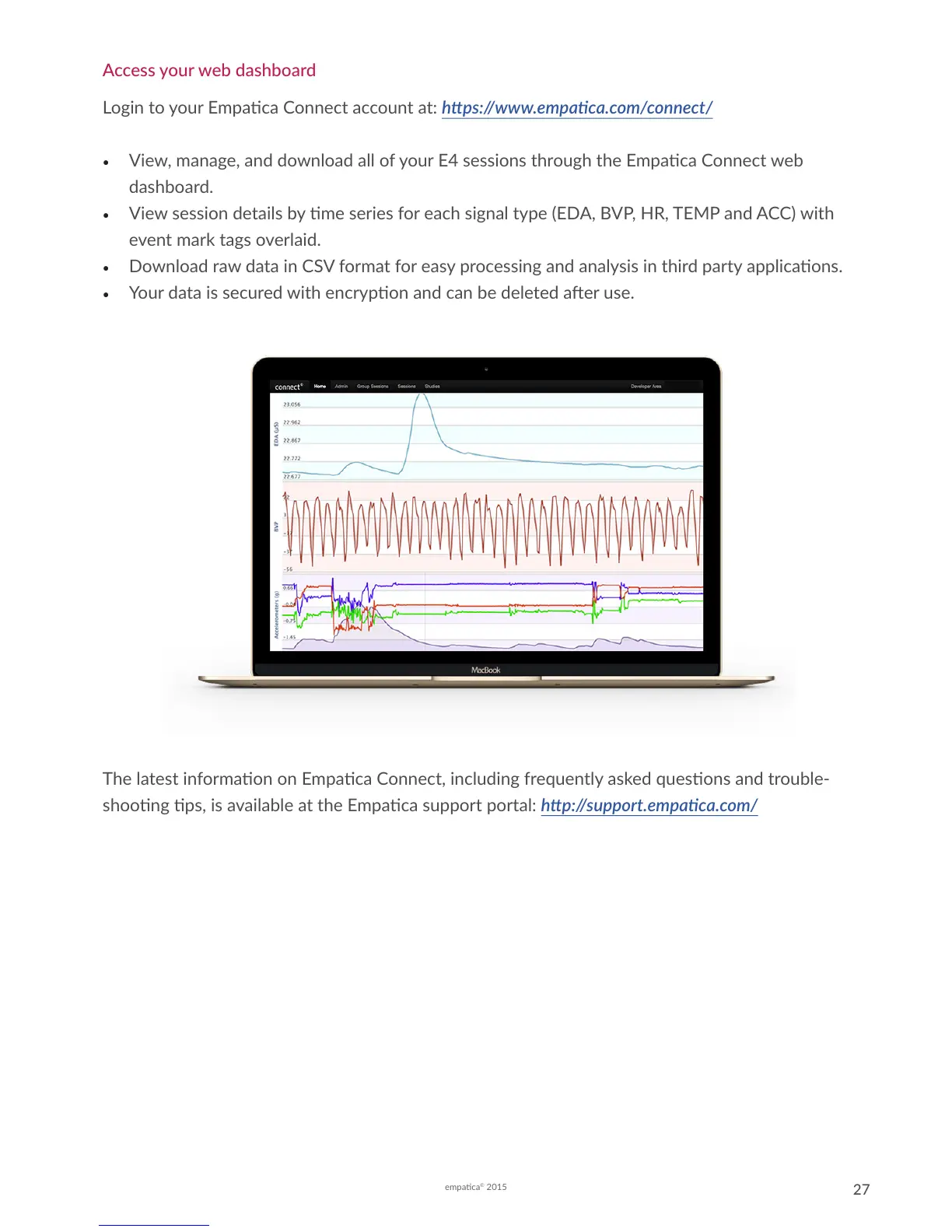 • View, manage, and download all of your E4 sessions through the Empaca Connect web