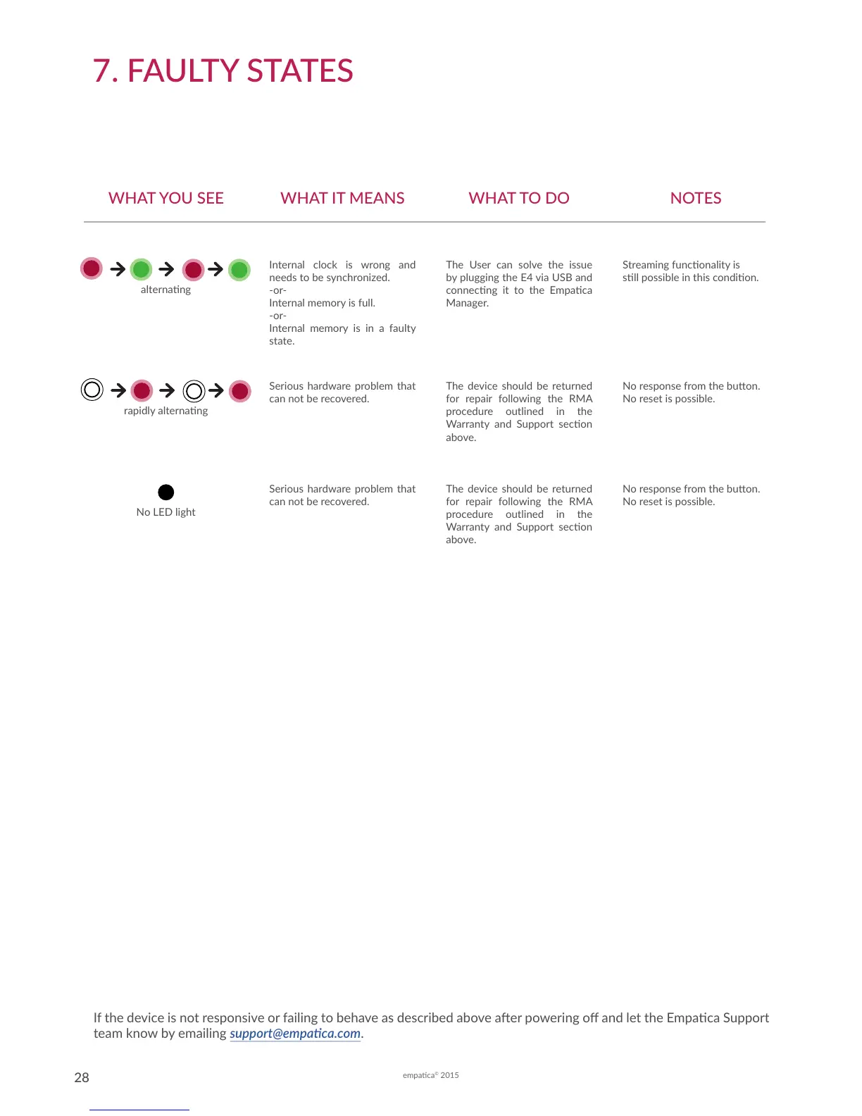 If the device is not responsive or failing to behave as described above aer powering o and let the Empaca Support