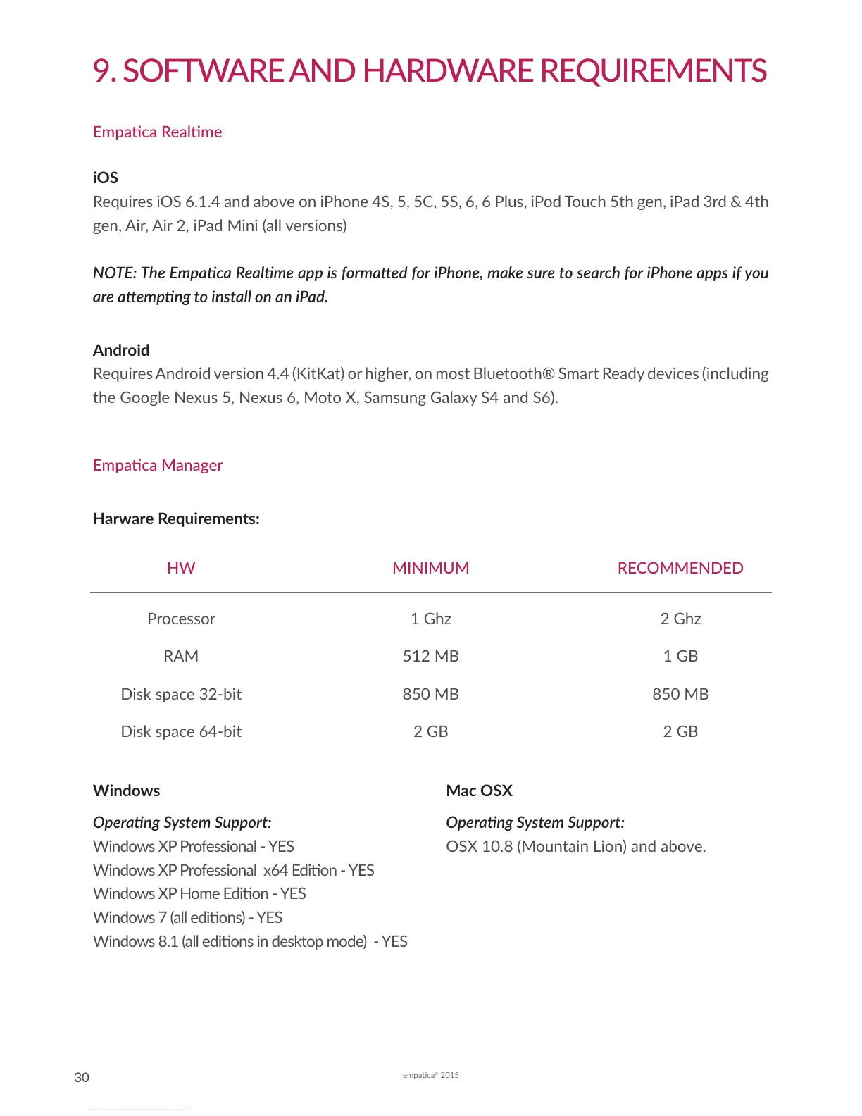9. SOFTWARE AND HARDWARE REQUIREMENTS