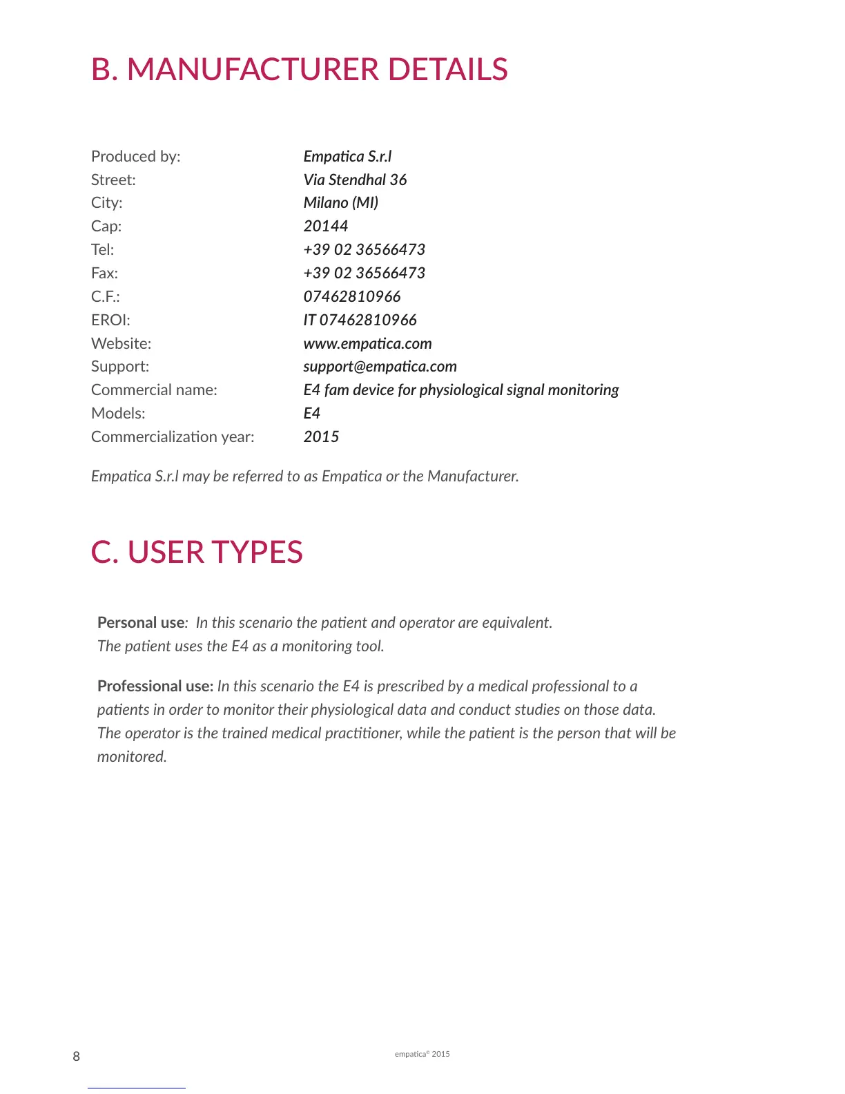 Empaca S.r.l may be referred to as Empaca or the Manufacturer.