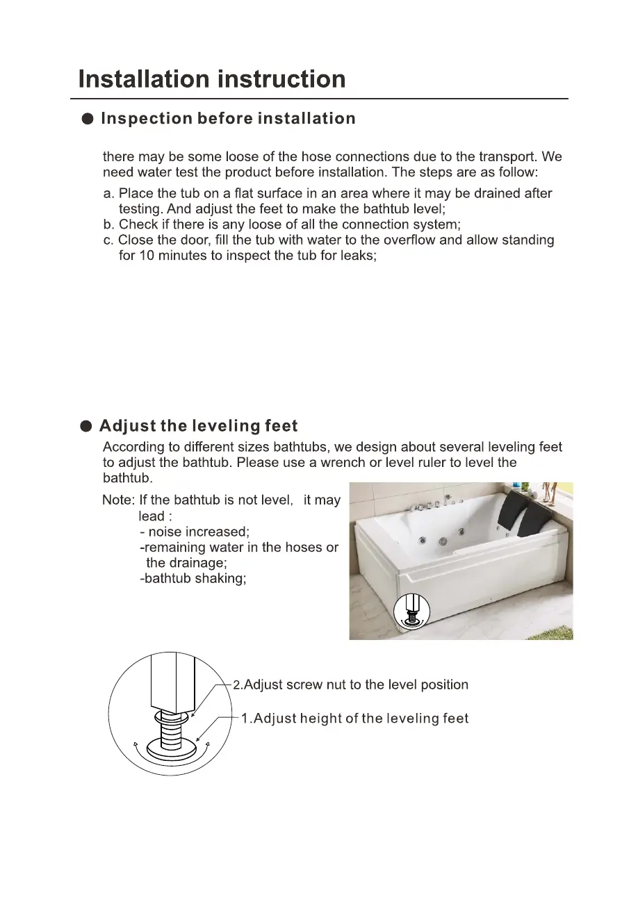 functions of massage, air bubble, waterfall and so on), inspect the tub