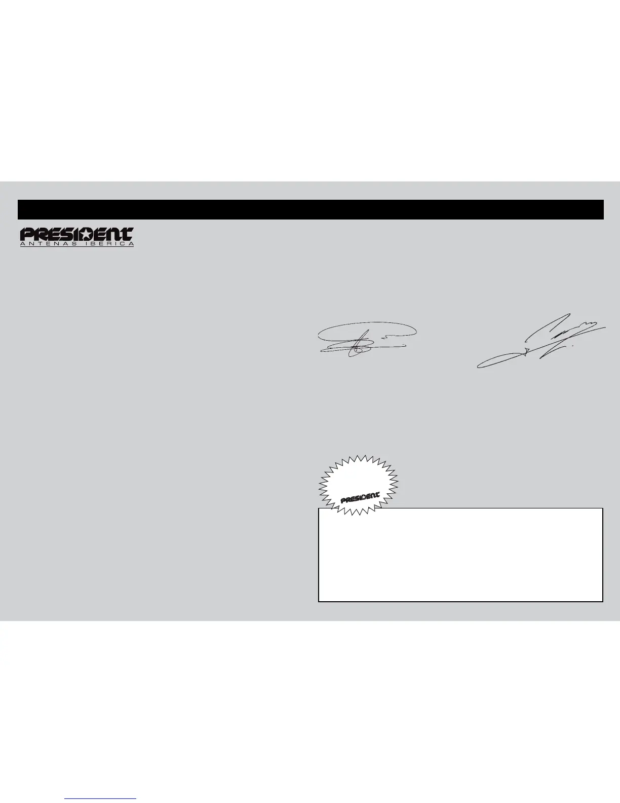 Ud. ha confiado en la experiencia y calidad de PRESIDENT y se lo agradecemos. Para que quede