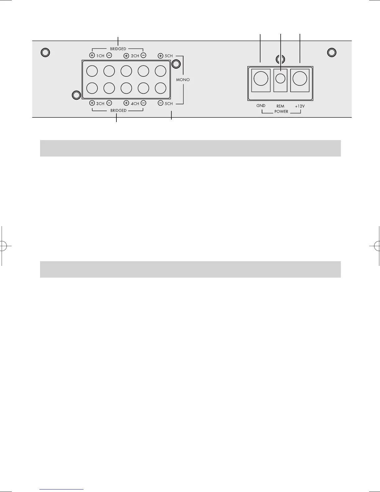➡ subwoofer channel 2 ohms / satellite channels 2 ohms stereo or 4 ohms bridged