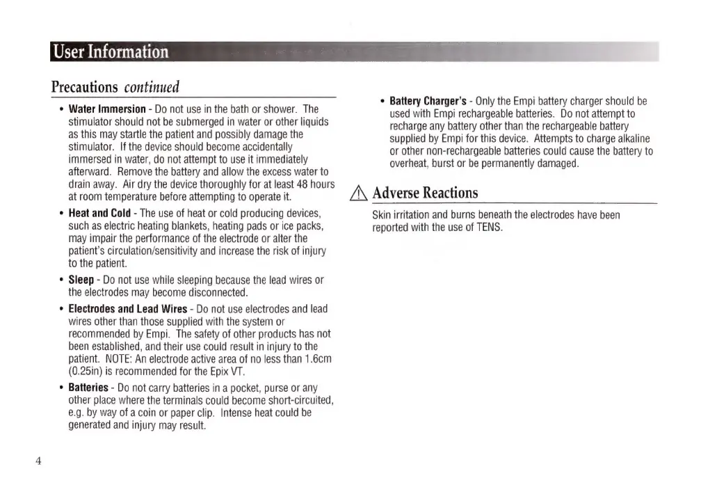 Empi EPIX VT - Adverse Reactions