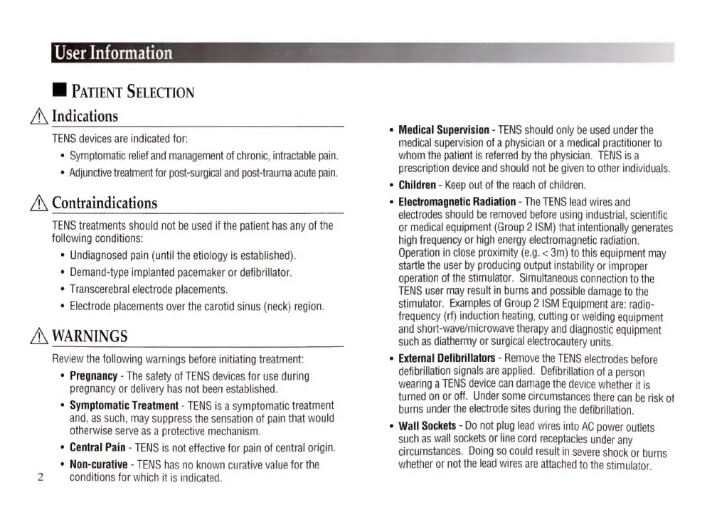 Empi EPIX VT - Contraindications