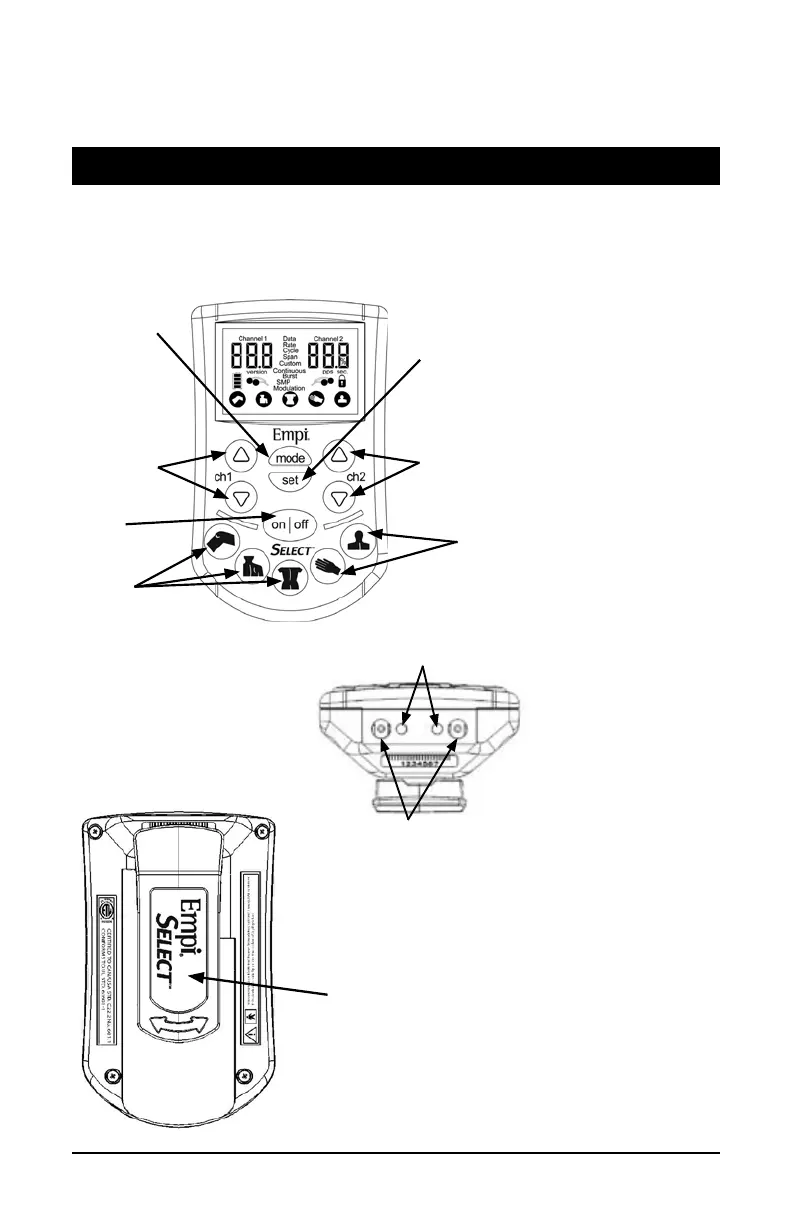 The Select system is a battery-operated electrical stimulator. The device has five Quick
