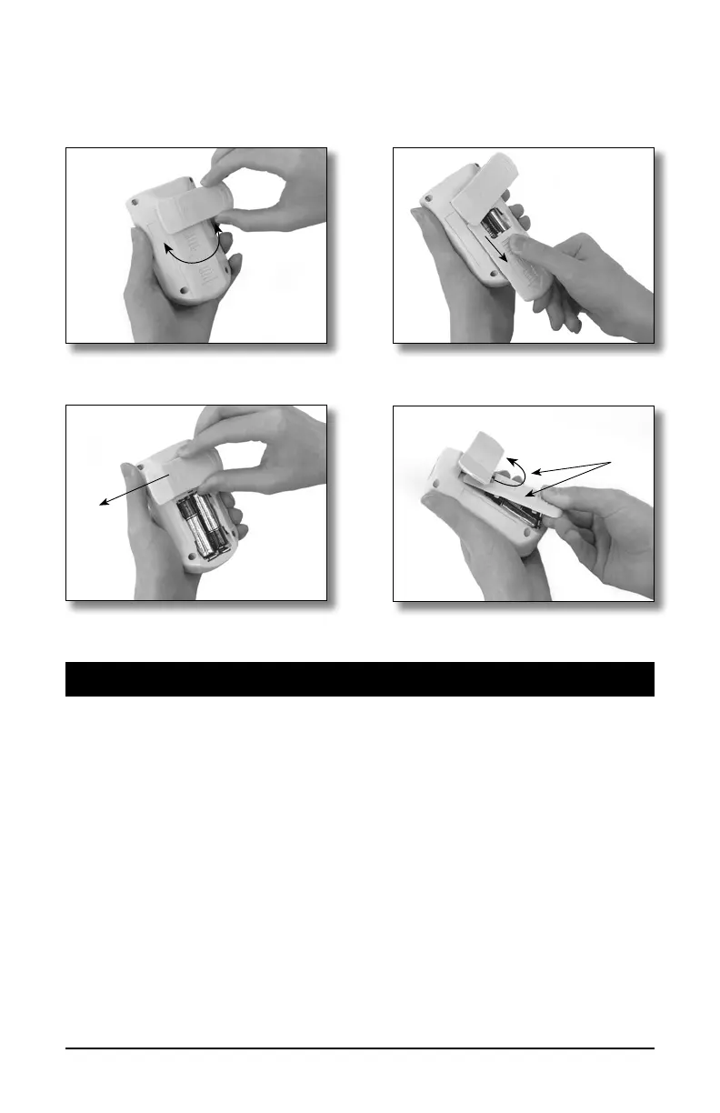 The Select operates with two “AA” alkaline (or rechargeable) batteries. Install the