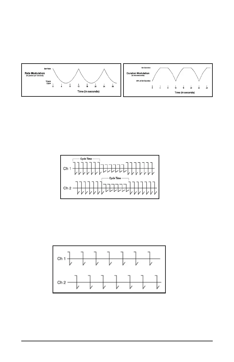 This setting produces a continuous stimulation at the set intensity. Channel 1 pulses