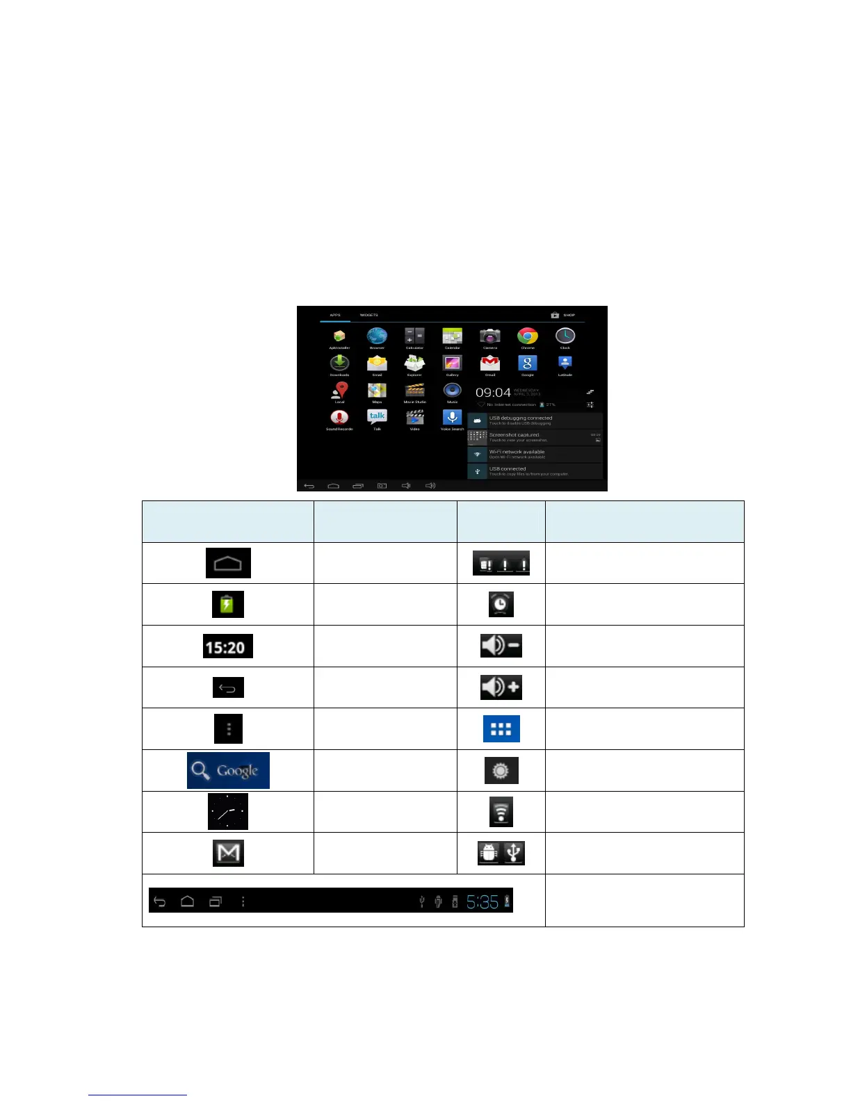 other side to a power socket. The battery icon on the desktop icon will show the device is charging;