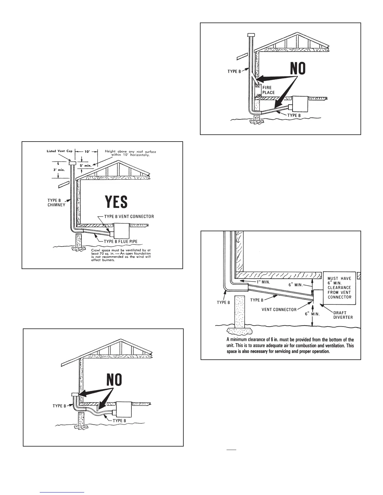 1. Flue pipe MUST always have an upward slope (1/4 inch per