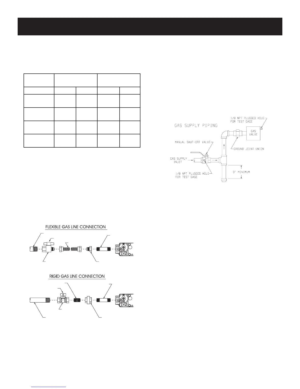 plugged for pressure test. Never pressure test with appliance connected;