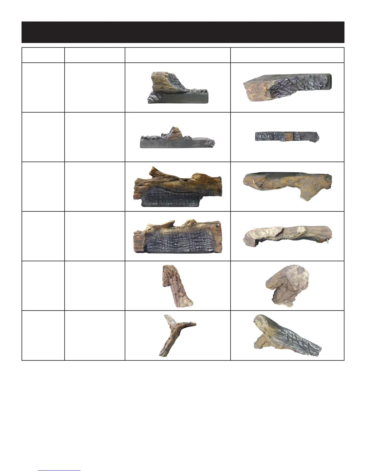 Empire DVCD42FP31P-2 - DVCD36 Fireplace Log Identification; Log Identification Chart