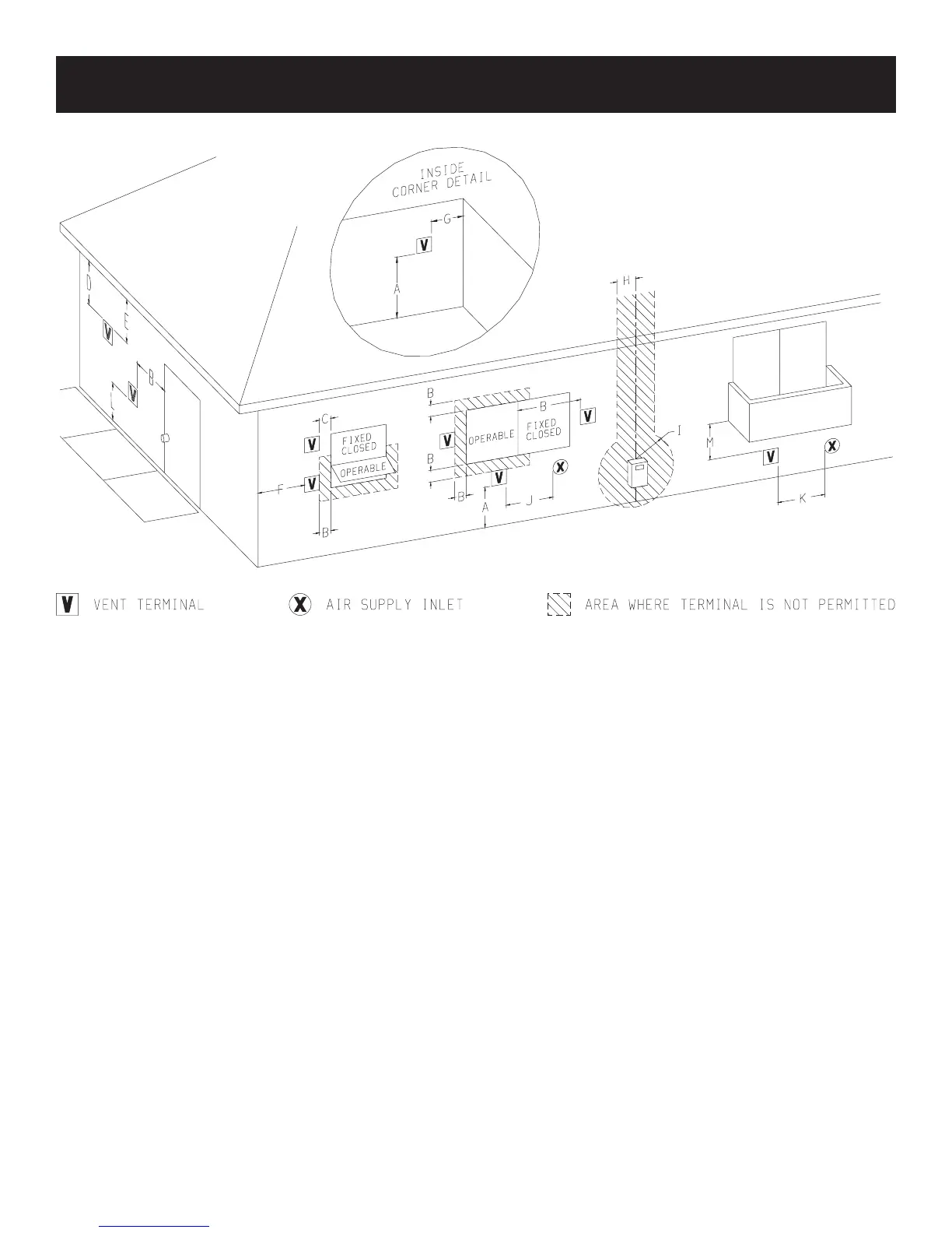J = Clearance to non-mechanical air supply inlet to building
