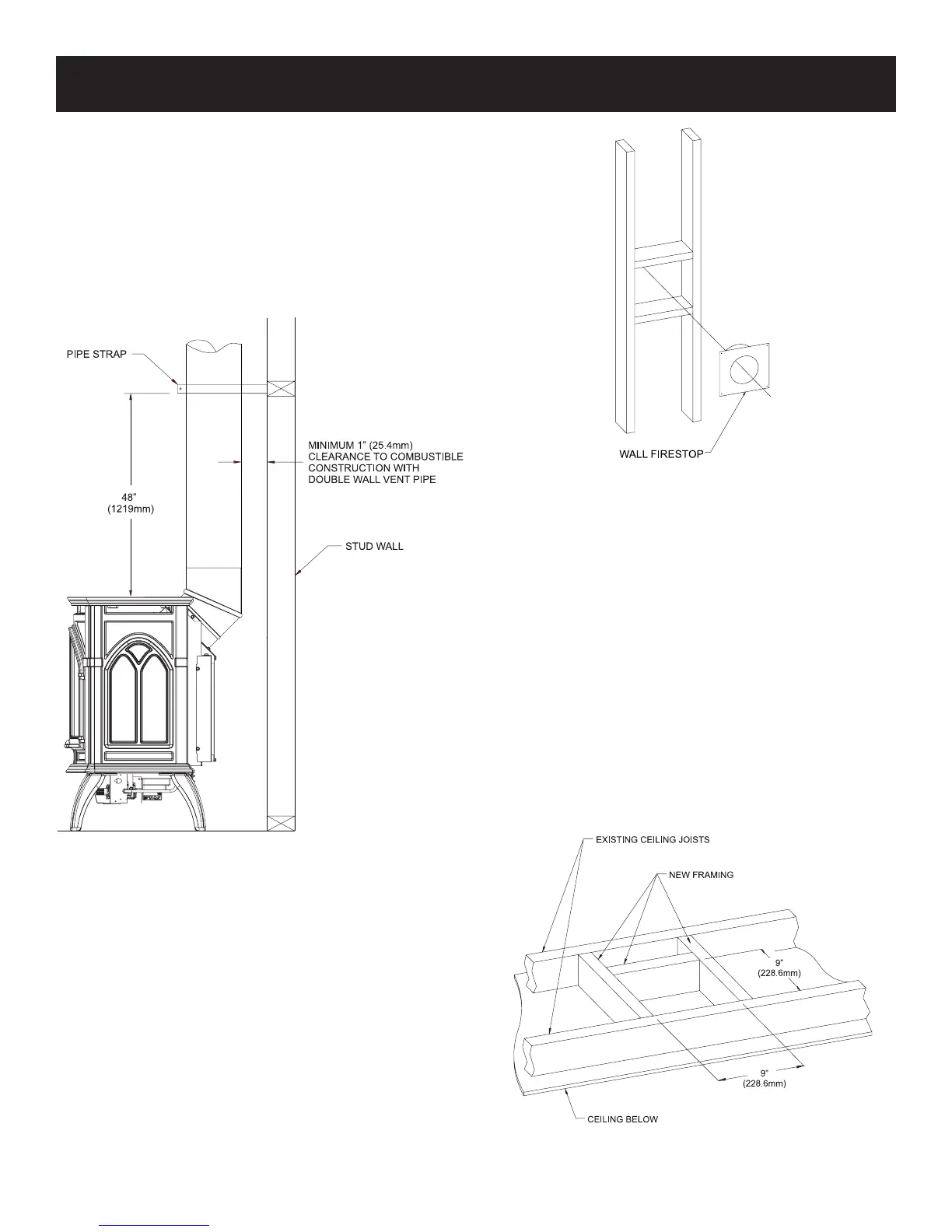 2 inch clearance to combustibles above 6-5/8 inch diameter pipe and