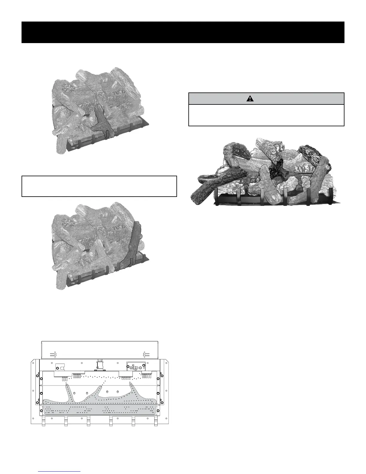 ATTENTION: Do not place decorative rock on logs or on burner.