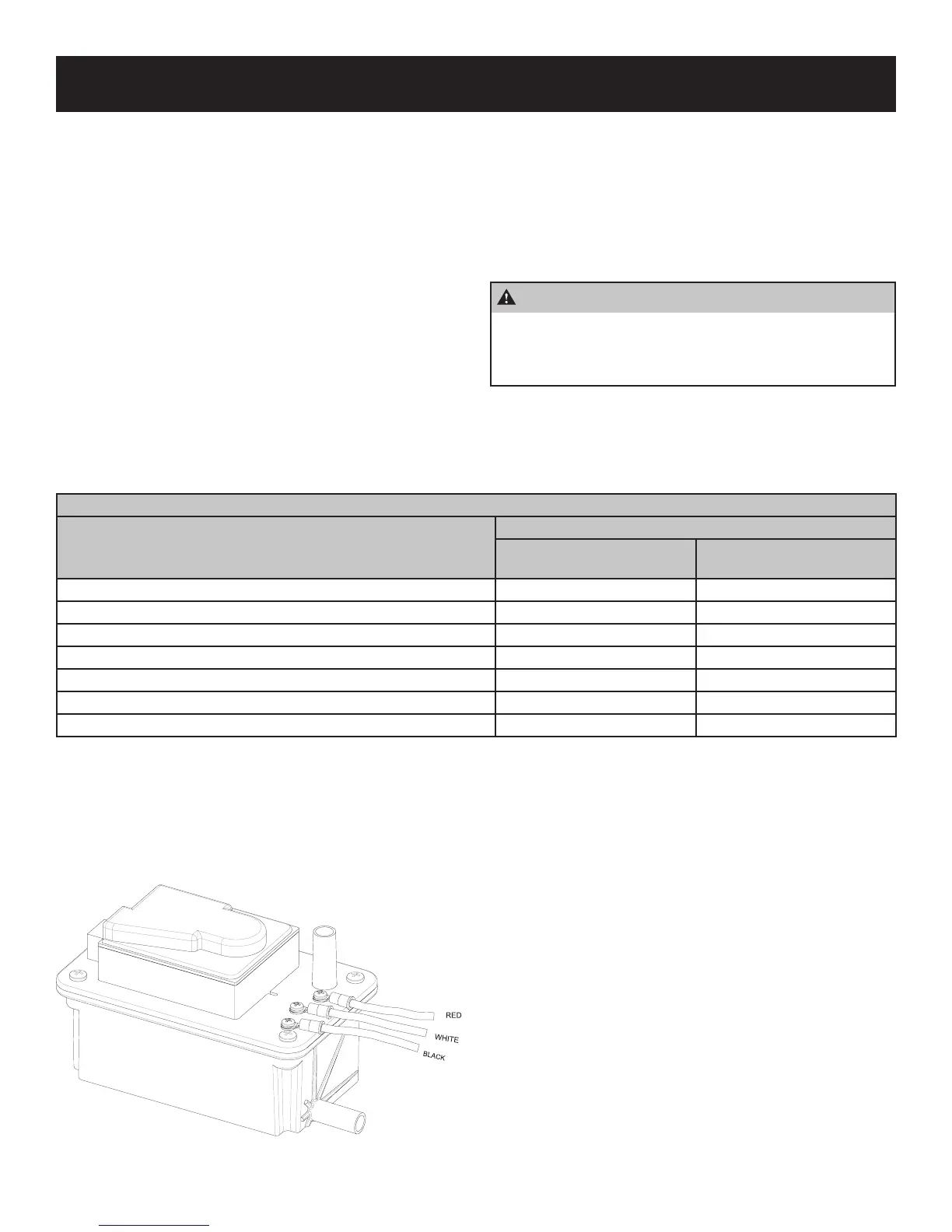 If service is needed to the condensate pump, the wires must be attached in the same order they were removed. If the pump is replaced,