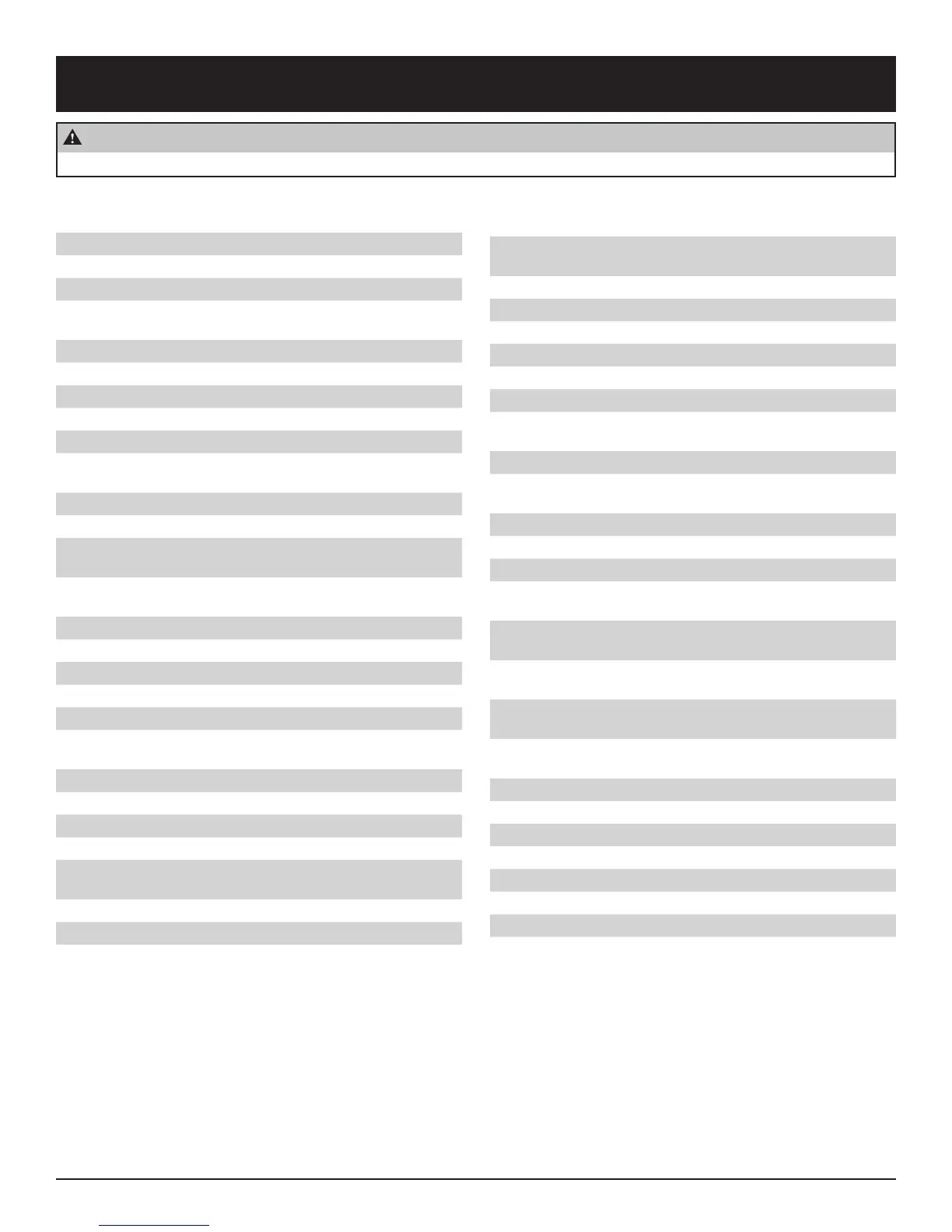 Use only manufacturerās replacement parts. Use of any other parts could cause injury or death.