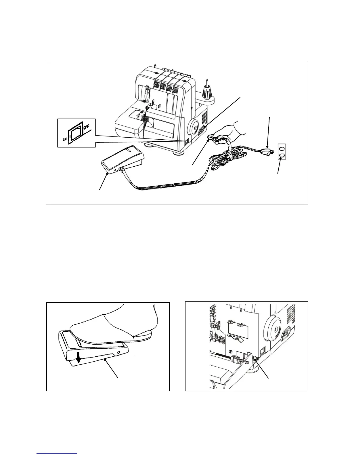 Turn on the power switch. This power switch controls both the machine power and sewing light.