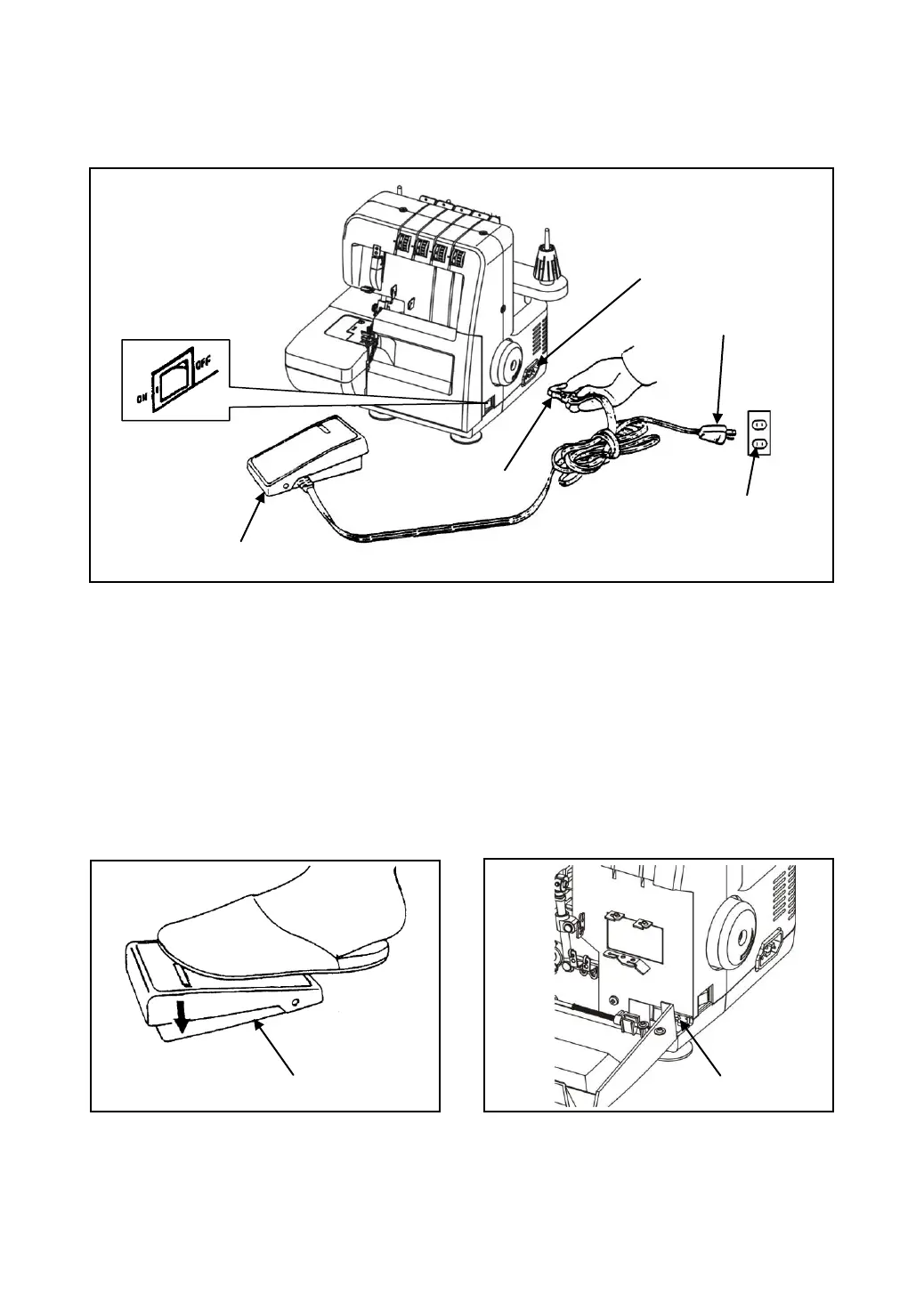 Turn on the power switch. This power switch controls both the machine power and sewing light.