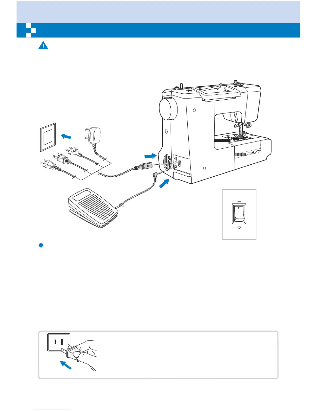 Always make sure that the machine is unplugged from power source and the main switch is on