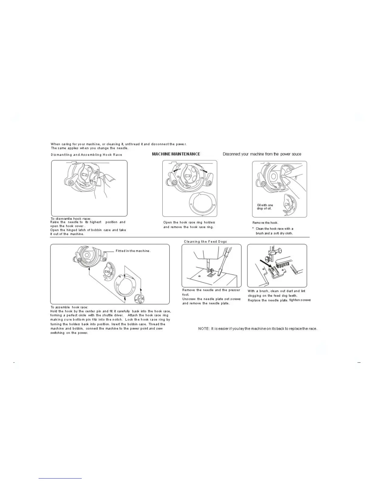 Empisal Expression 889 - Machine Maintenance; Hook Race Maintenance; Feed Dog Cleaning