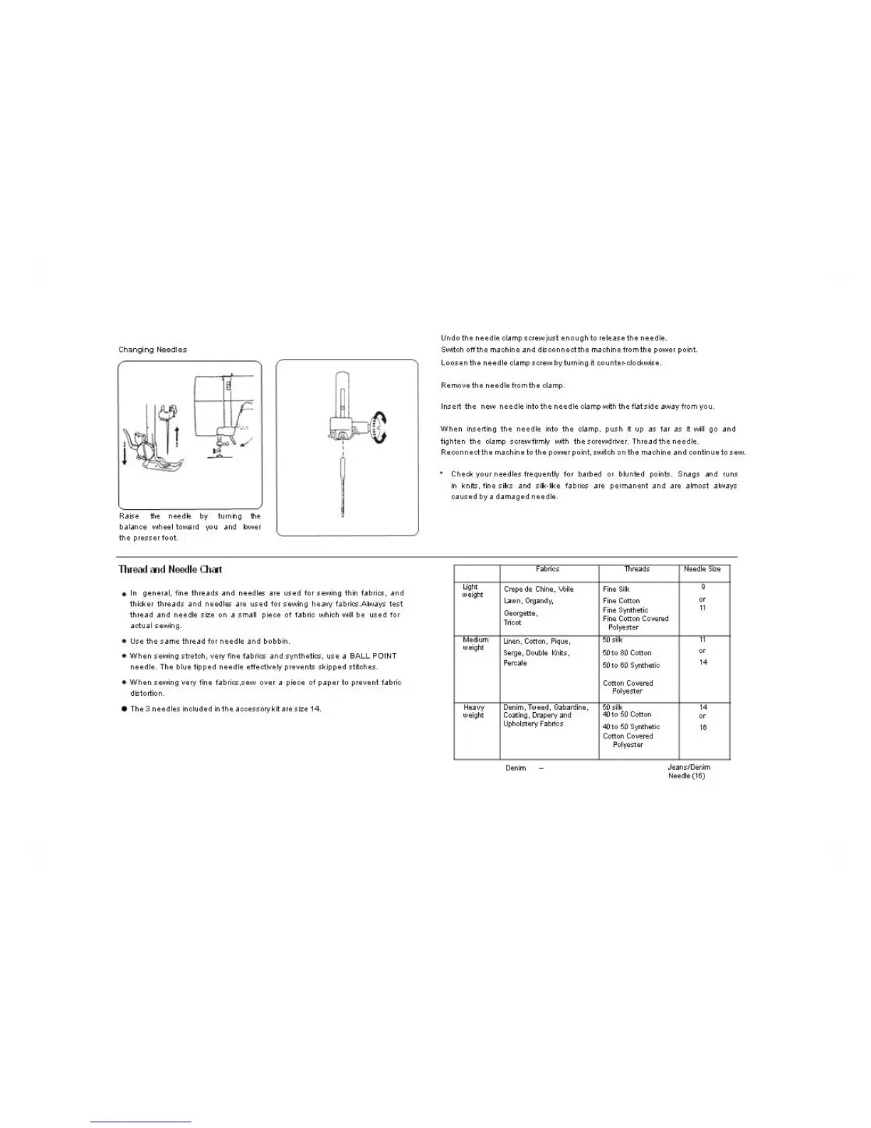 Empisal Expression 889 - Needle and Thread Management; Changing Sewing Needles; Thread and Needle Selection Guide