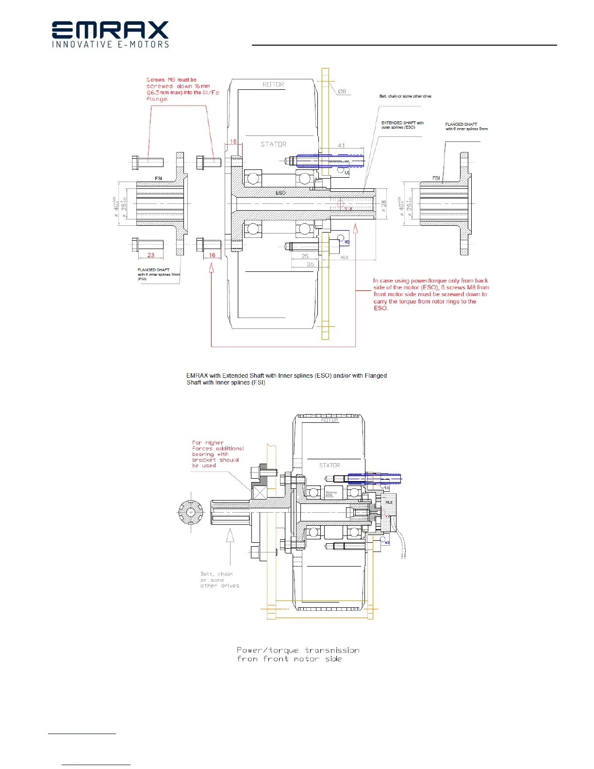 EMRAX 188 - Figure 22: EMRAX with ESO and FSI; Figure 23: Power;Torque Transmission from Front Motor Side