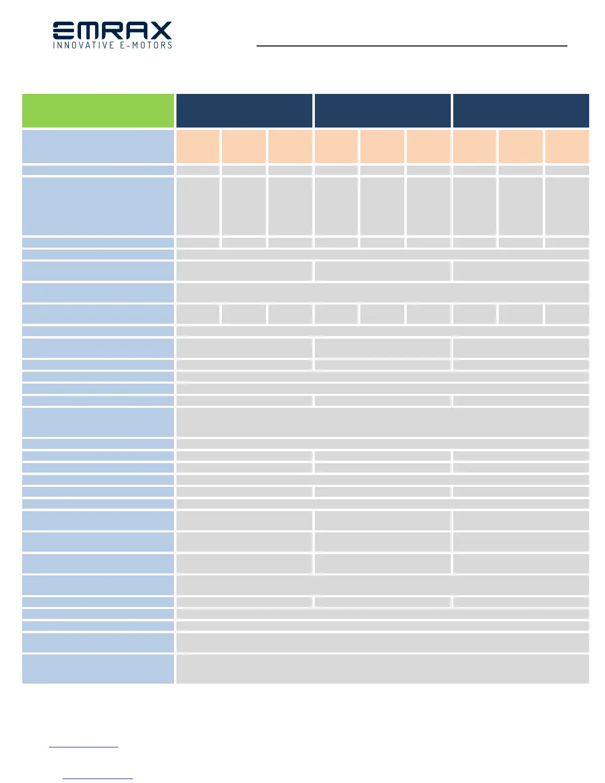 EMRAX 228 - EMRAX 188 Technical Data Table