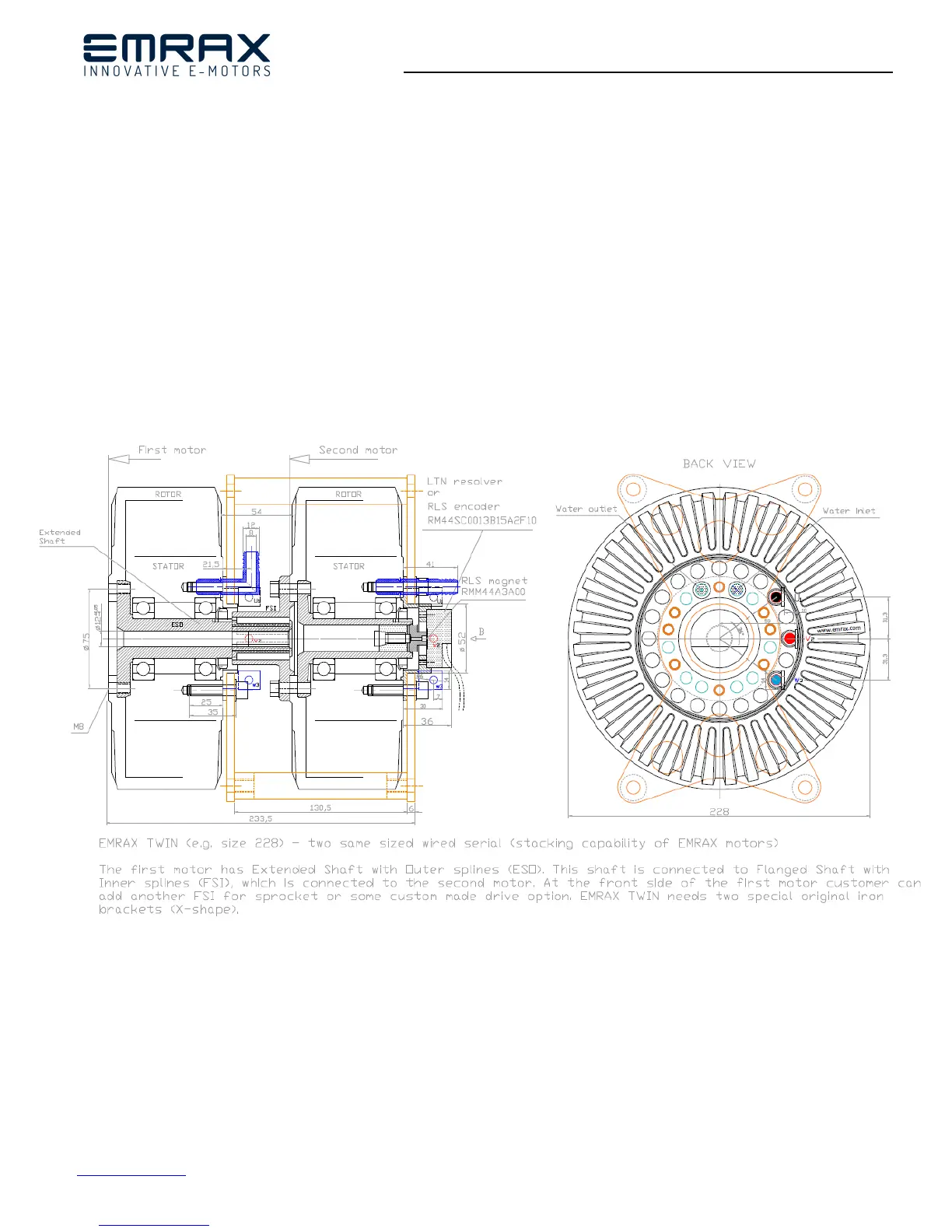 Two same sized EMRAX motors can be connected serially – this is EMRAX TWIN. All EMRAX motor types can be connected into