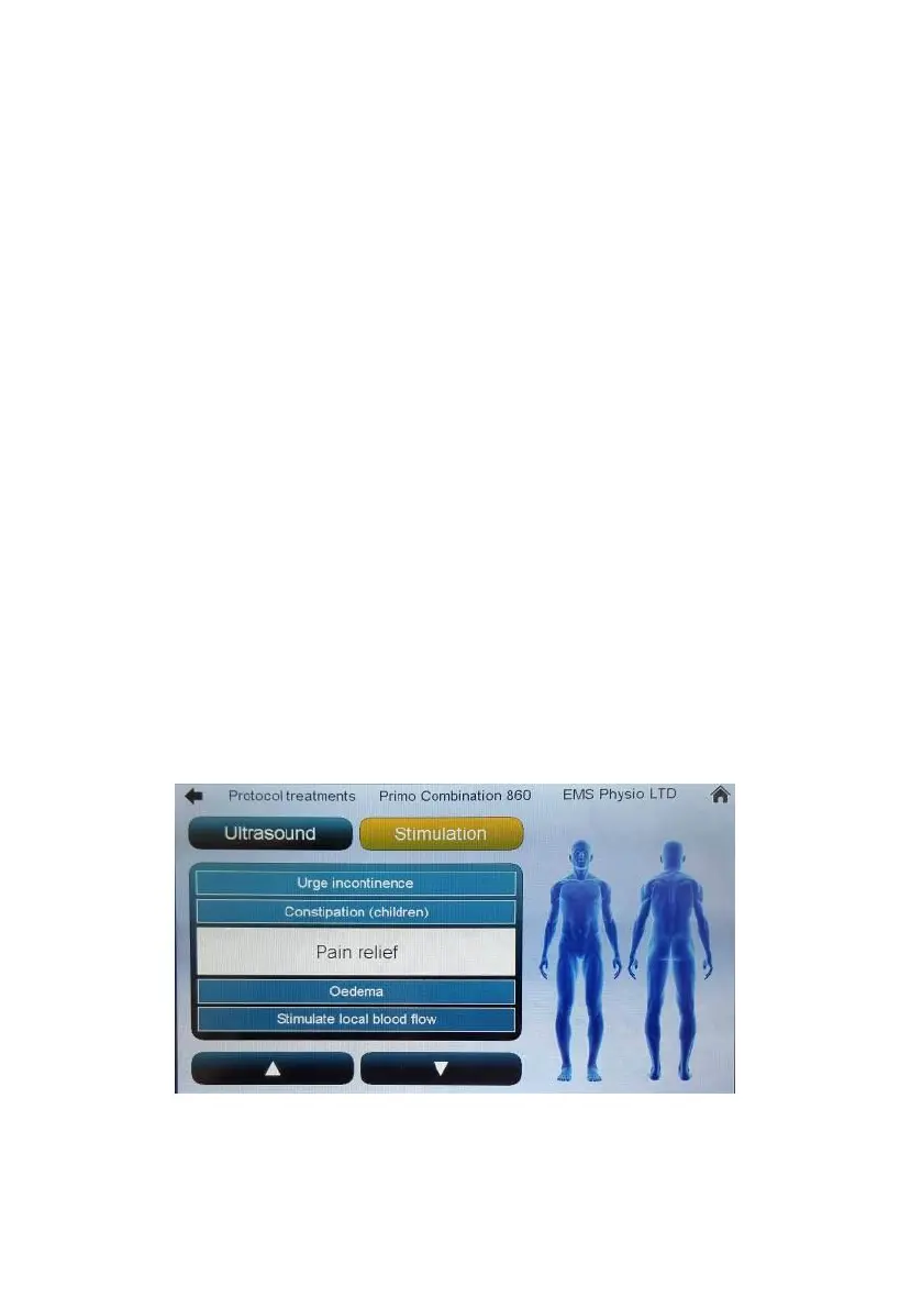 particular condition. A choice of ultrasound or stimulation treatments is given