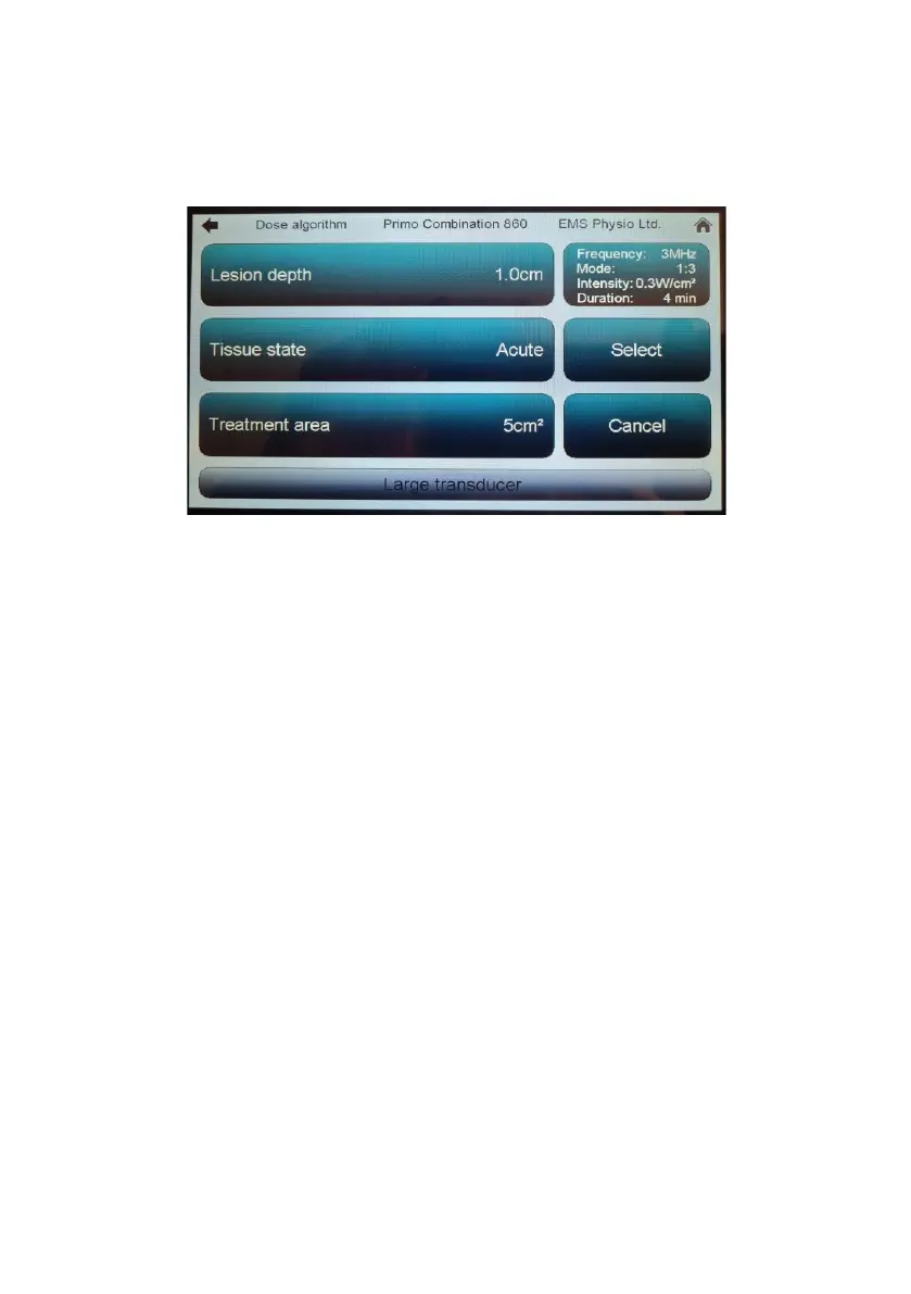 If a transducer is not connected ‘Intensity’ and ‘Duration’ will not be