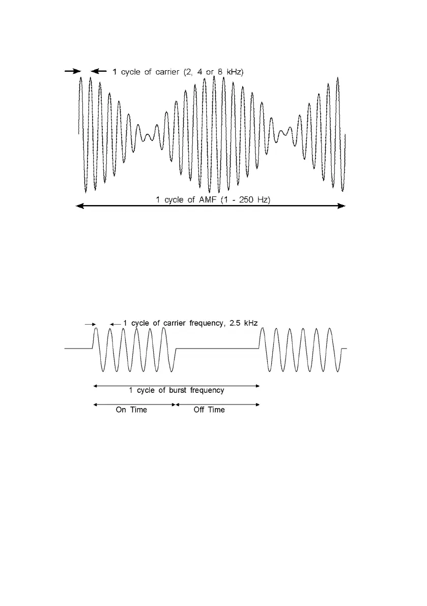 The burst frequency may be set to be from 1 Hz to 100 Hz. The on and off