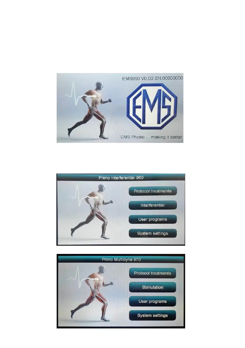 When the Primo Interferential 960/Multidyne 970 is turned on, the EMS