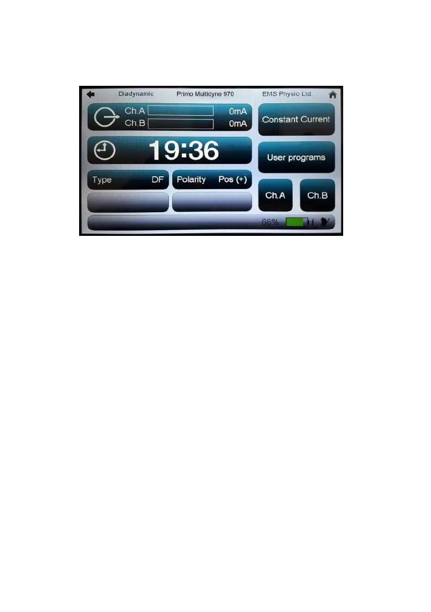 ‘Type’: The diadynamic waveform may be selected by touching the ‘Type’