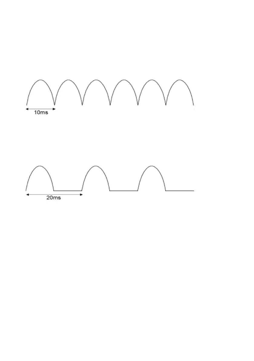 The MF waveform is a continuous half wave rectified 50 Hz sinewave.