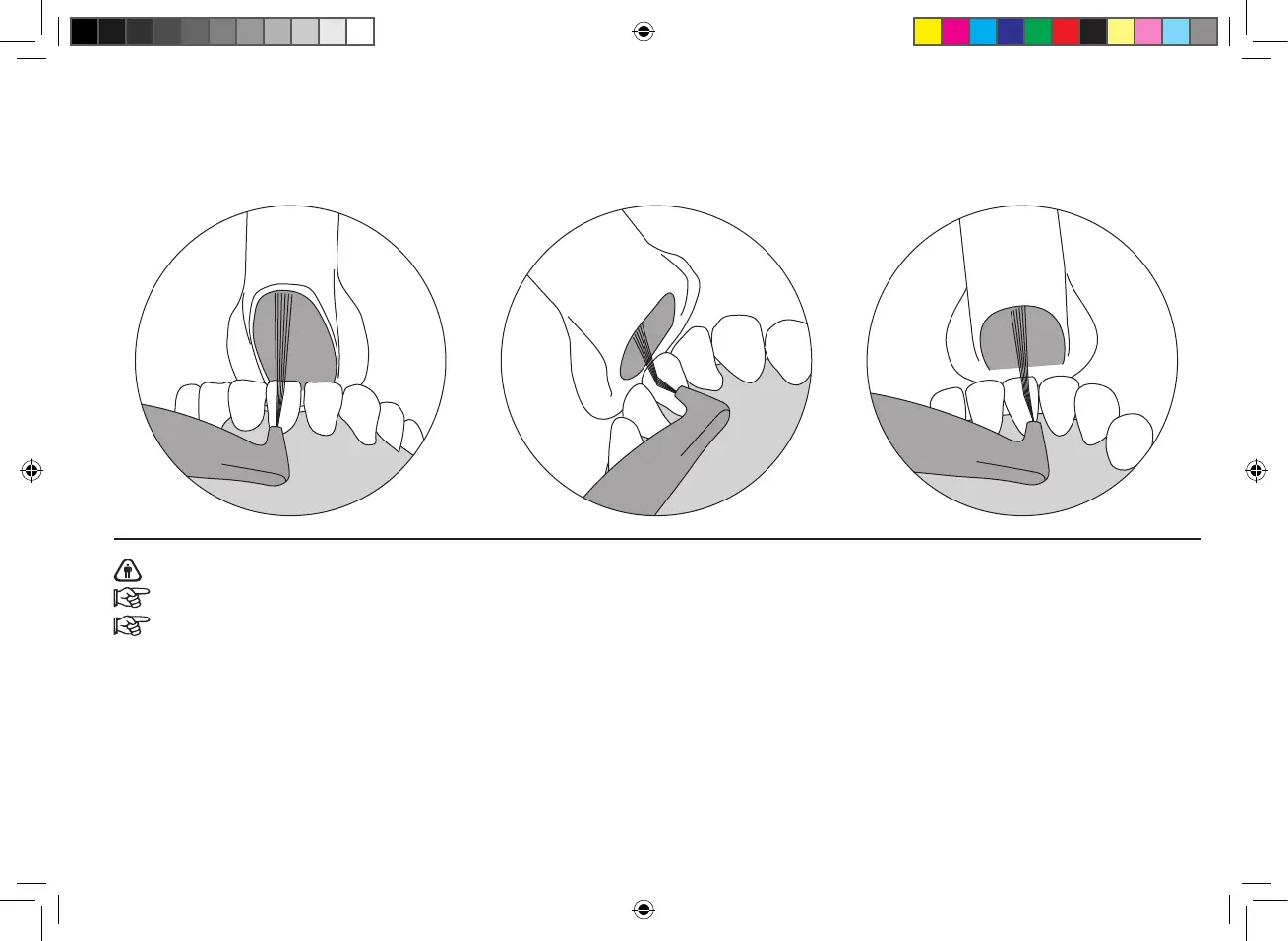 喷嘴与牙齿之间的角度应设为 30 到 60 度。 角度越小,清洁区域越大。