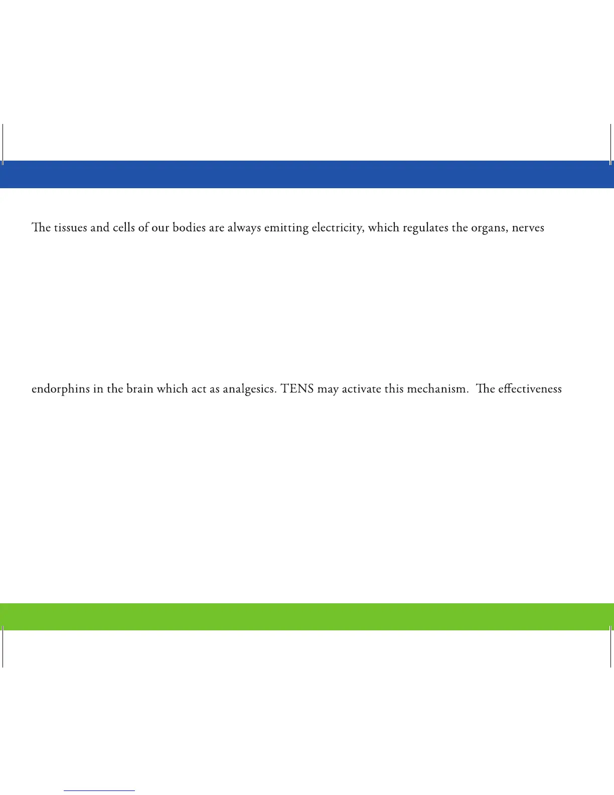 TENS is believed to work by two dierent mechanisms. First, electrical stimulation of the fast-