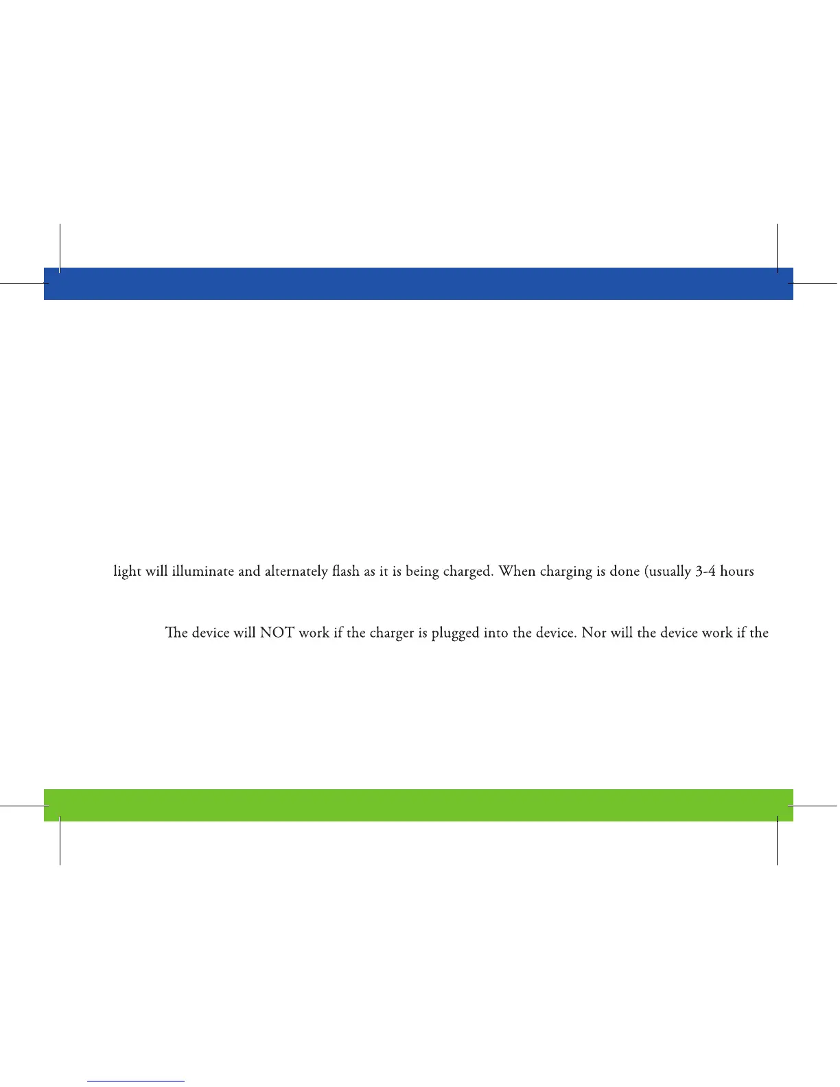 on a fully discharged battery), a green steady light will illuminate. Typical charge may last 2 hours of use