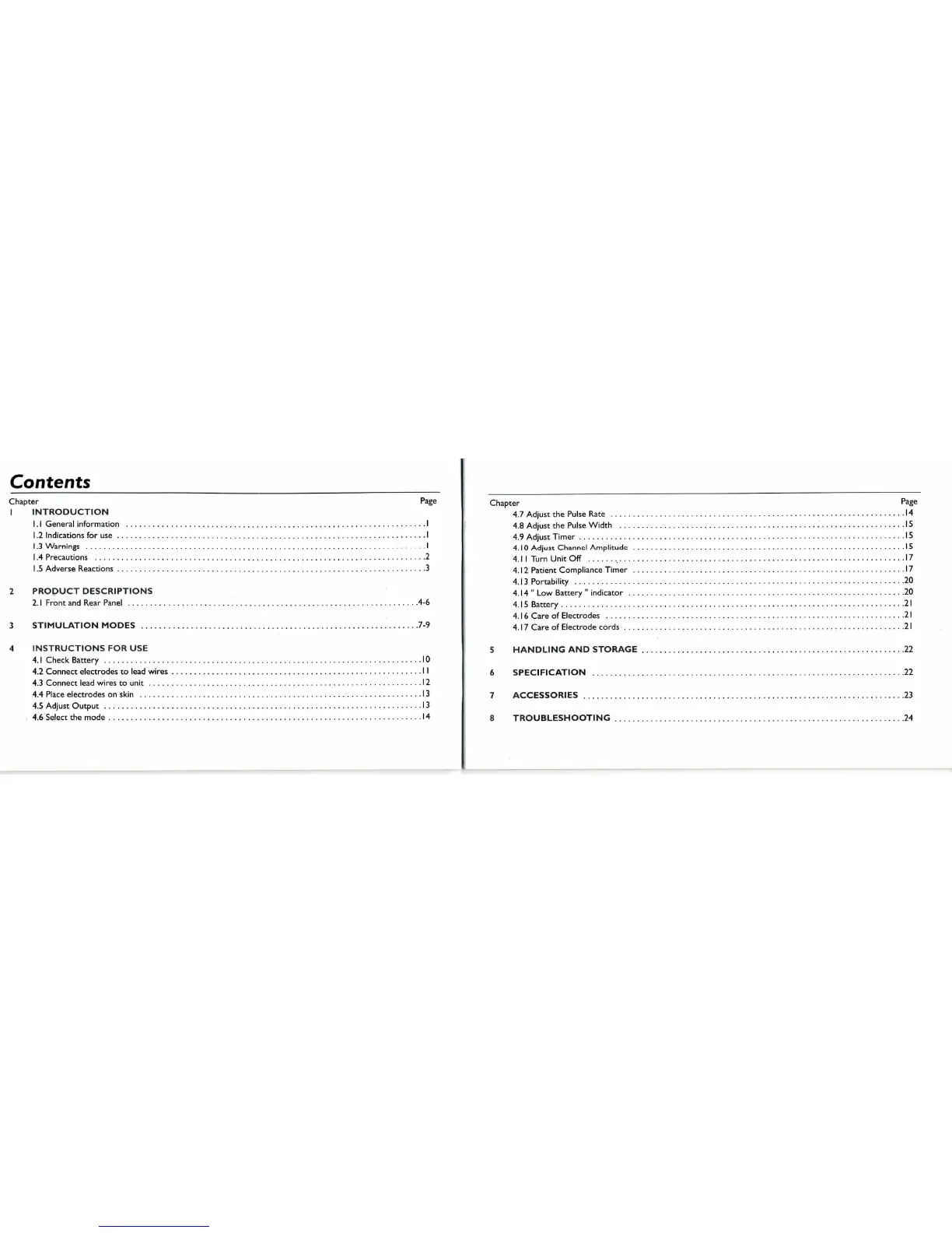 EMSI TENS-6000 - Table of Contents