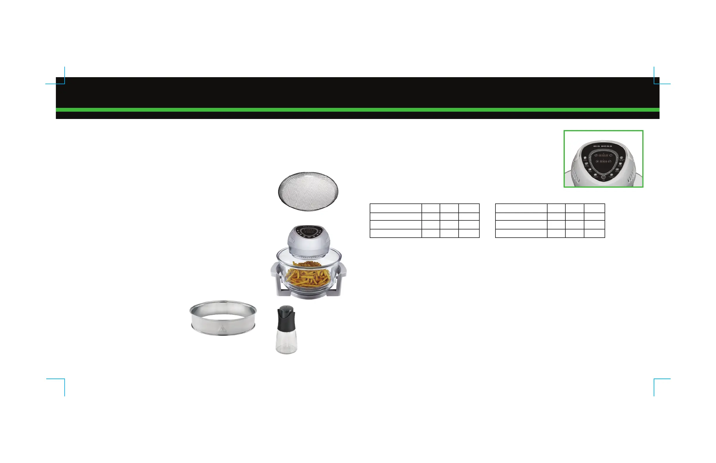 NOTE: The cooking time depends on the size, weight and thickness of the food to be cooked.
