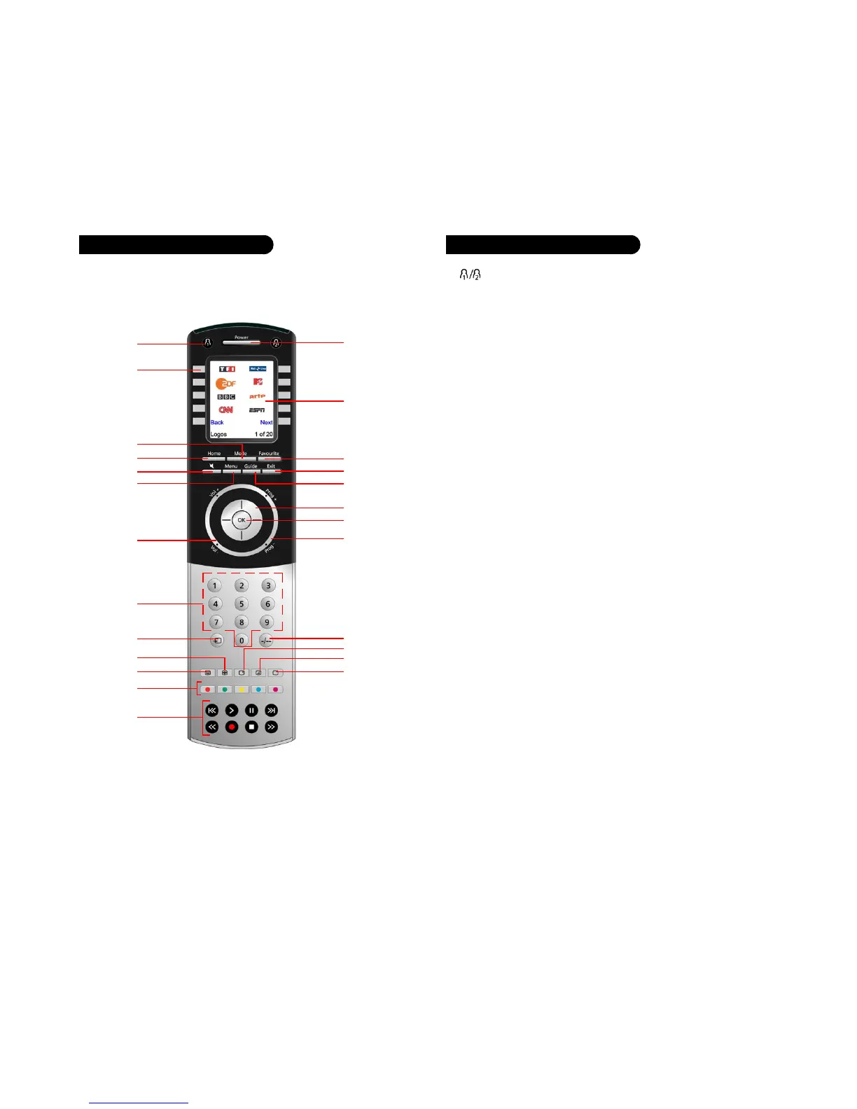 13. VOLUME +/- - Om het geluidsniveau te veranderen ; meestal is dit de TV.