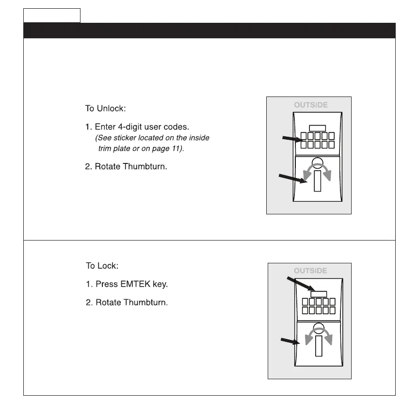 Your Emtek lock is shipped with two 4-digit user codes and a 6-digit programming code.