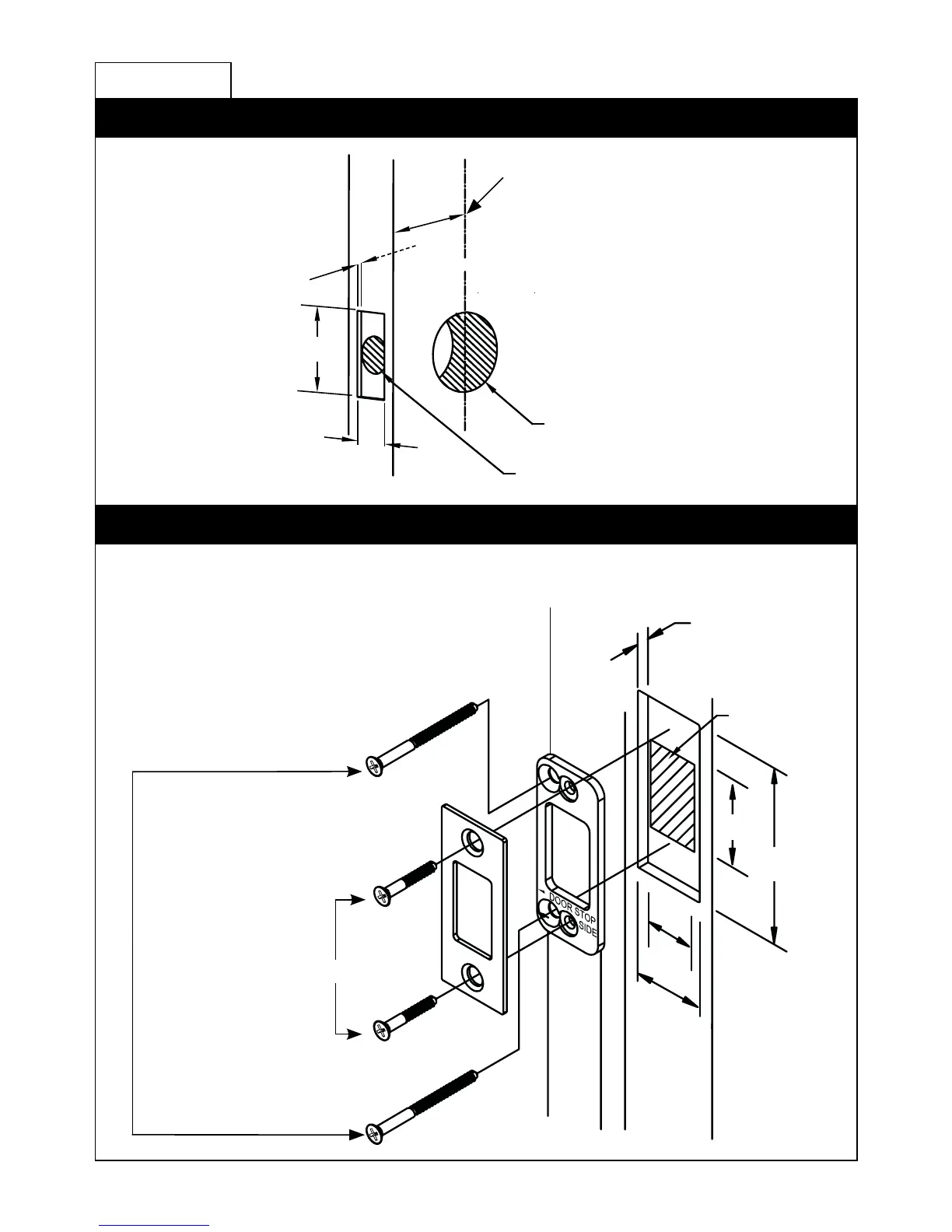 Step 2: Fasten Strike Plate using two #8 x ¾” Wood Screws (item #6).