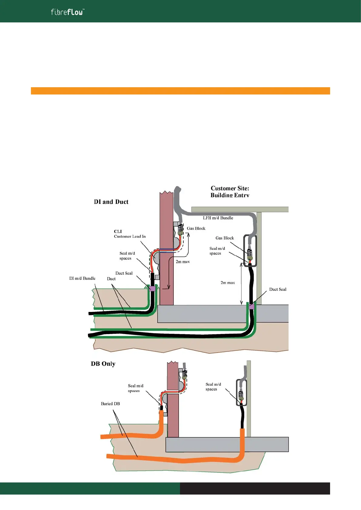 6. Once inside the building, the m/ds should transition to internal LFH rated m/d, within 2 metres from the m/d assembly seal point. M/d interstices