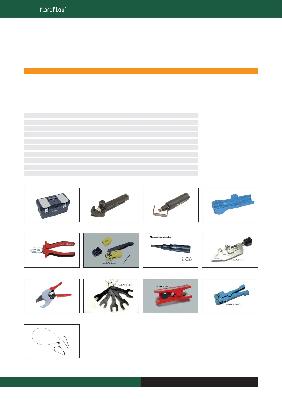 from Emtelle. Tools may be purchased separately or they can be supplied complete with the toolbox (as shown). Not all the listed tools are illustrated