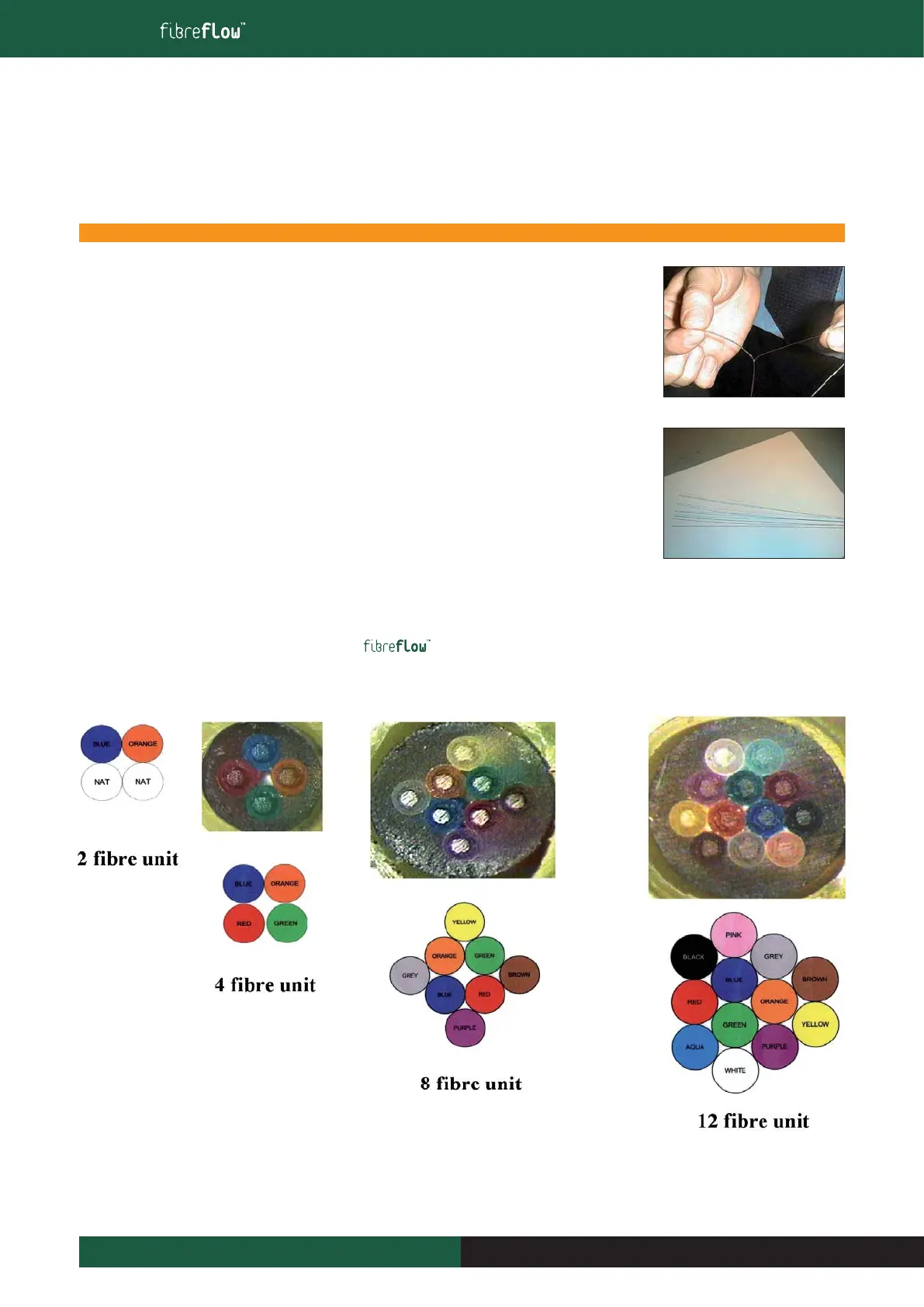 The sketches below show the colour configuration of 4 fibre products. These can be used when stripping off the outer sheaths to
