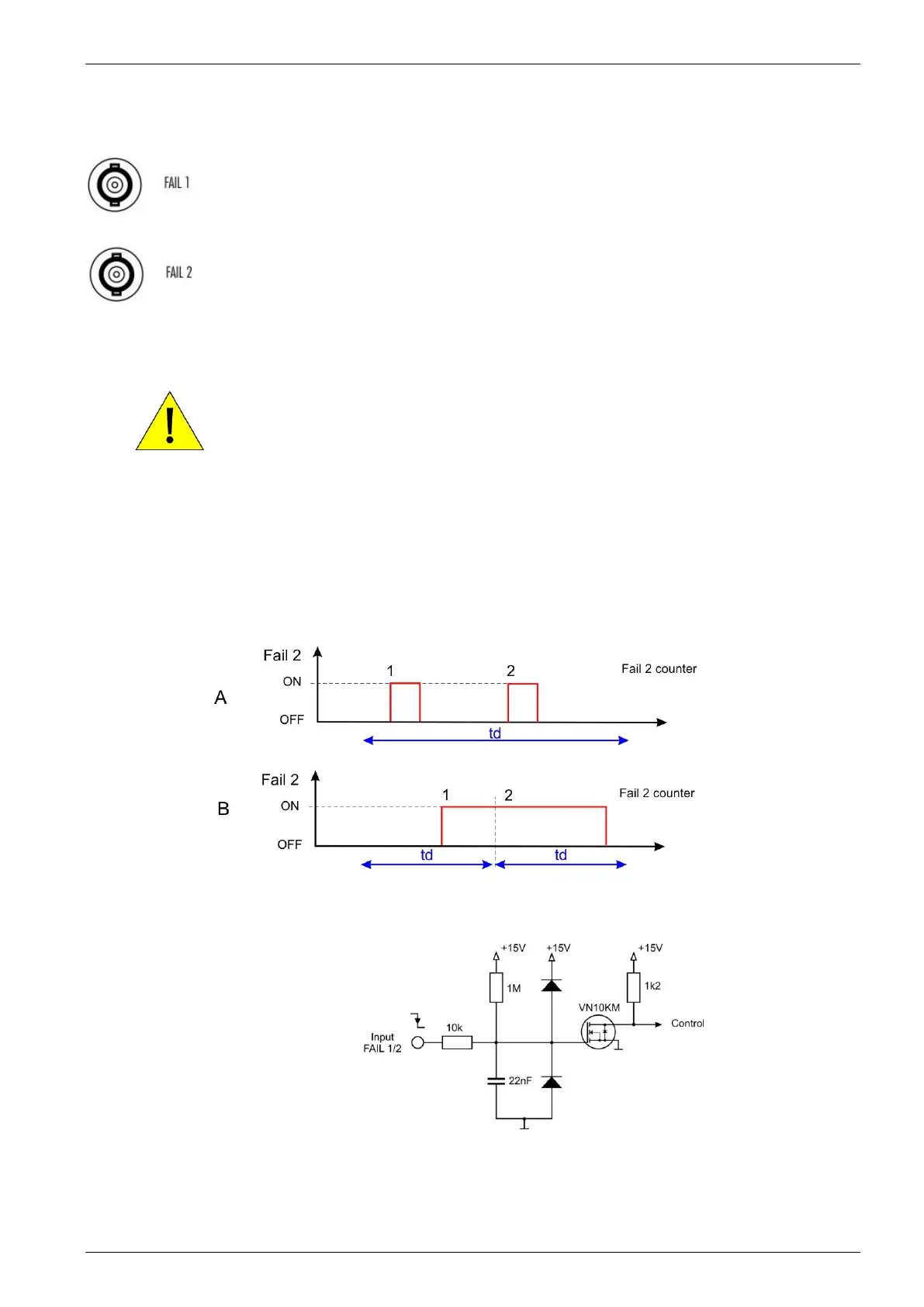 Fail 1: A short circuit at the Fail 1 input will stop the test procedure. It is not possible to