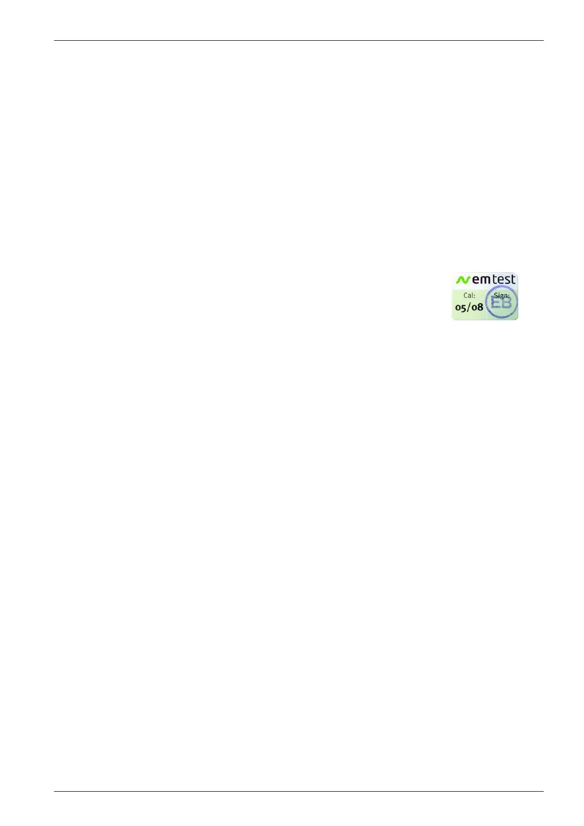 The EM Test equipment are calibrated in the factory and marked with a calibration