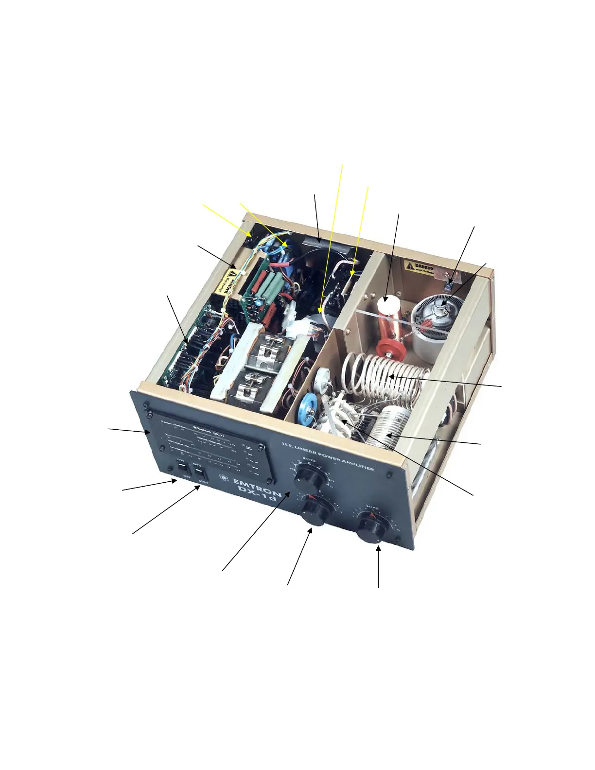 The main components of a DX-1d amplifier are shown in the picture below.